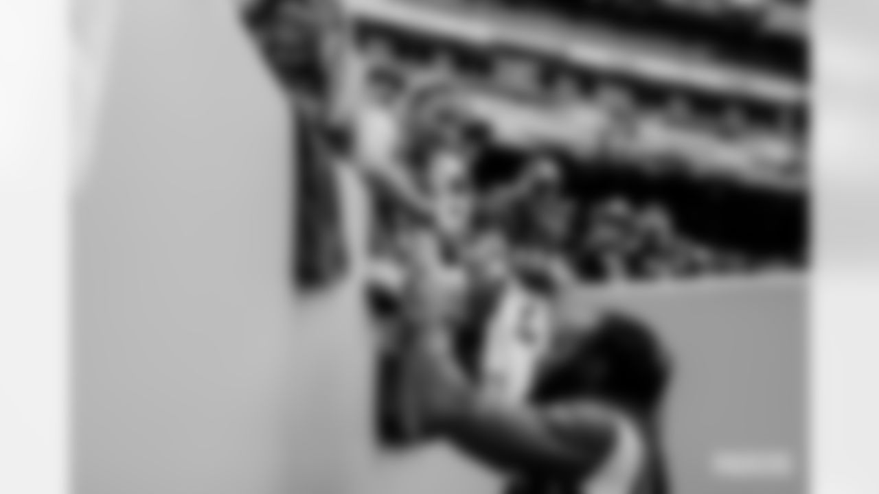 Green Bay Packers running back Aaron Jones (33) signs autographs for fans prior to an NFL football game against the Washington Commanders on Sunday, October 23, 2022 in Landover, Maryland. (Kathryn Riley/NFL)